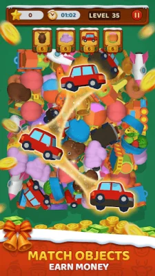 Exciting level challenges with real cash prizes await players in Match Object: Jackpot Treasure. Each mission brings something new to clear and conquer, with the thrill of progressing through treasure-filled levels and the potential for cash-out rewards.