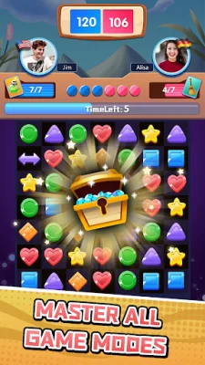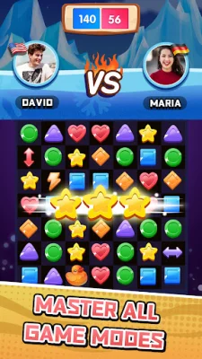 Match Puzzle is a fun and free casual puzzle game that will keep you entertained for hours! With every move you make, you have the power to determine the outcome of the game. Not only do you have to think about your own score, but also how your moves will affect your opponent. Join tournaments and compete against players from all around the world! Show off your amazing puzzle-solving skills and earn trophies and titles. Get ready for an exciting battle! Experience new ways to play Match Puzzle! Connect 3 or more blocks of the same color in a line to earn points. But watch out, matching red or blue cubes will also give you extra magic card power! This game is packed with features that will keep you hooked: ⭐ Easy to play - simply swap two adjacent squares! ⭐ Relaxing, enjoyable, strategic, and thrilling all at once ⭐ User-friendly interface that is simple and fun to use ⭐ Use your skills and strategy to achieve high scores Before entering a Match Puzzle battle, you can choose a magic card as a prop and a character to represent yourself. Keep in mind that the rarer your magic cards and characters are, the higher your chances of winning! So what are you waiting for? Get ready to have a blast with Match Puzzle! Download and play now for a unique and exciting gaming experience.