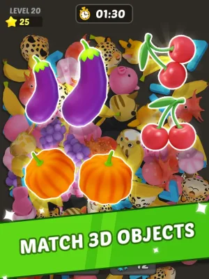 The Matching Master 3D game is a fun and engaging mobile application that allows players to match various objects in a 3D environment. The game features a wide range of objects, including food items, furniture, electronics, and animals, all designed to make the game visually appealing and captivating. Players must use their memory and object finding skills to successfully complete each level before time runs out.