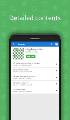 The course includes a free part that allows you to test the program before purchasing the full version. The free lessons are fully functional and cover topics such as checkmates with different pieces, complicated positions, and underpromotions. The full version includes even more lessons, divided into volumes for easy navigation and learning. You can also link the app to a free Chess King account and access the course from multiple devices. The app is also adapted for tablet screens and does not require an internet connection.