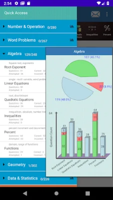 The application covers 35 math topics divided into 5 practice categories: Numbers & Operations, Algebra, Word Problems, Data & Statistics, and Geometry. It also offers 6 timed mock tests to simulate the experience of taking a real exam. This can be beneficial for students who want to practice under timed conditions and improve their test-taking skills.