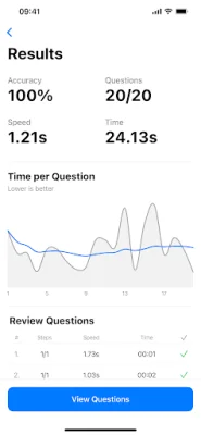 This application is designed to help users practice and improve their skills with just a single tap. By simply opening the app and tapping the start button, users can begin their practice sessions. The app also offers a unique feature of double questions, which encourages users to think ahead and learn faster. This can be a great tool for those looking to challenge themselves and improve their skills in a shorter amount of time.