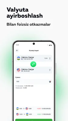 В приложении доступен широкий функционал, включающий в себя денежные переводы между пользователями (P2P), онлайн конверсию валют, возможность открытия валютного счета, а также онлайн вкладов и пополнения. Вы можете открыть вклады как в национальной, так и в иностранной валюте, а также оформить микрозайм или погасить кредит.