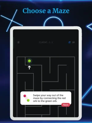 Maze Craze is a fun and exciting game that is easy to play. Each maze is unique and created using different algorithms to keep you on your toes. The game starts with two dots, a start dot and a green end dot. To play, simply swipe in the direction you want your dot to travel and keep swiping until you reach the green dot. Along the way, you can also collect valuable items hidden throughout the maze to help you out. These items are especially important in the larger and more complicated mazes, so make sure to take the time to find them.