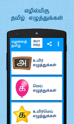 Introducing an educational app with over 300 words and sounds for young learners! This app aims to make learning Tamil alphabets fun and easy by associating each letter with an animal or object. With this app, your child can learn Tamil while having as much fun as playing games on your phone.