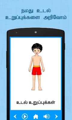 Not only does this app help children identify objects, but it also assists with pronunciation. The app features Uyir, Mei, and Uyir Mei ezhuthukal, and has easy navigation in a sequential manner, allowing children to explore on their own. A slideshow mode is also available for a more interactive learning experience. This app is targeted for children aged 2 to 6 years old.