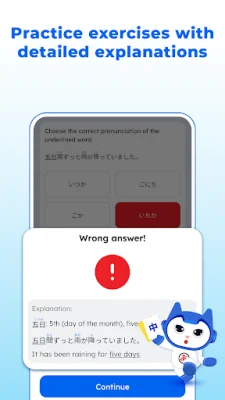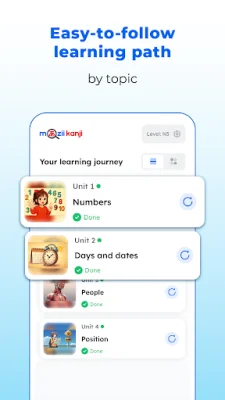 The app also offers smart study reminders to help users stay on track with their learning. It covers levels from N5 to N1, as well as a challenge mode for those looking for an extra challenge. Users can also save and manage vocabulary by level and track their progress in detail.