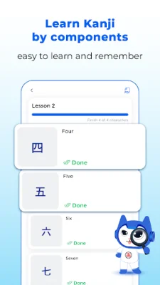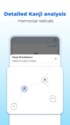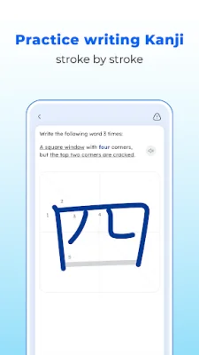 Mazii Kanji offers a comprehensive approach to learning kanji, covering meanings, readings, stroke order, and example sentences. The app also includes vivid image flashcards, quick quizzes to reinforce memory, and guided handwriting practice with stroke-by-stroke guidance. With just 30 minutes of daily practice, learners can improve their listening, speaking, reading, and writing skills in kanji, regardless of their current level.