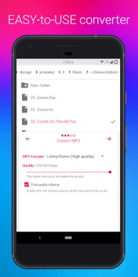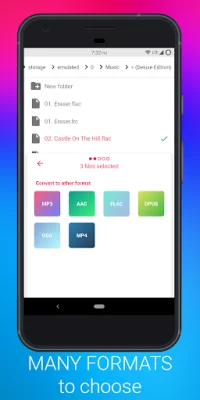 One of the best things about Android Media Converter Pro is that it's regularly updated, ensuring that you always have access to the latest features and improvements. And if you don't see your desired format on the list, don't worry - the app promises to include even more formats in the future. Currently, it supports popular formats such as AAC, FLAC, MP3, OPUS, OGG, WAV, and MP4, with the option to use custom commands for additional formats.