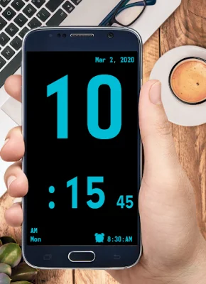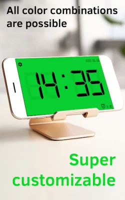 In addition to displaying the time, this app also has an alarm feature that can be set and will work even when the app is in the background or the phone is locked. It is compatible with all screen sizes, including tablets. However, if using the app at night, it is recommended to keep the device charging since the screen will always be on. The brightness can also be adjusted through the "Night mode" feature.