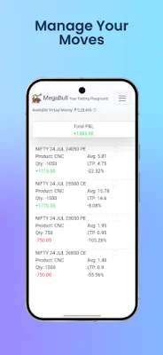 Megabull is an application that allows users to practice trading stocks and options without using real money. It is a paper trading and stock market simulator that uses almost real-time data from the National Stock Exchange (NSE). This app is perfect for beginners, college students, and active traders who want to learn about the Indian stock market in a safe environment.
