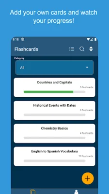 The app offers various learning practices to help you memorize your content. These exercises progress from easy to hard, allowing you to gradually improve your knowledge and retention. These practices include multiple choice and fill-in-the-letters exercises, making the learning process more interactive and engaging.