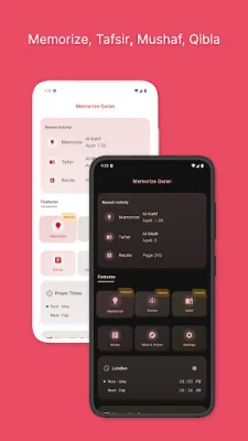 Some key features of our application include Smart Memorization, which includes auto-repetition, custom delays, and a revision dashboard. We also offer Mushaf support with configurations such as Madani or Color-coded Tajweed, as well as premium audio from well-known reciters like Alafasy, Al-Sudais, and Al-Muaiqly. Our application also provides study tools such as Ibn Kathir Tafsir, Word-by-Word translation, and Tajweed highlighting. Additionally, we offer free support for Qibla and prayer times.
