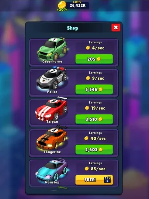Some of the game's features include its simplicity and easy-to-use interface. You can buy, merge, and manage your cars to earn money from racing. Even when you're offline, you can still earn money. Keep an eye out for special events featuring neon cars, battle cars, muscle cars, or even planes to add some excitement to your gameplay. And don't forget to catch balloons or try your luck with the lucky wheel for surprising rewards.