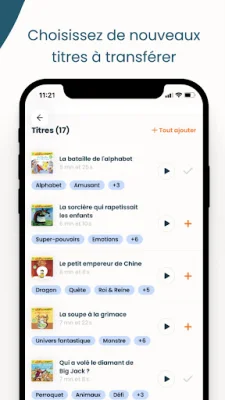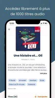 The app allows you to explore four different universes - stories, music, documentaries, and calm - with dozens of collections to choose from. Each title also comes with a summary and excerpts to help guide your selection. This makes it easy to find the perfect audio content for your child's interests and age.