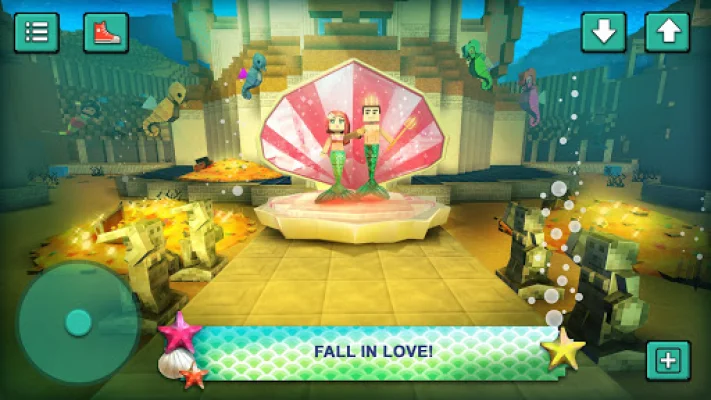 But it's not just about crafting and building, players can also meet and interact with other mermaid friends and sea animals like bass fish, whales, and even a handsome triton prince. You can chat with them, go on dates, and even have a boyfriend in this virtual world. And with upcoming features like multiplayer mode and more sea animals and items to craft, the fun never ends in Mermaid Craft.