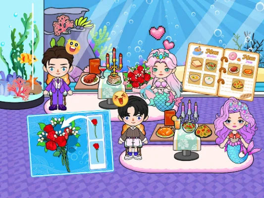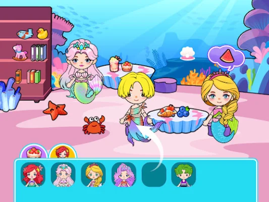 Start your adventure in the magical world under the sea with this exciting application! Meet new friends like the beautiful mermaid princess and prince, who are about to have their own baby. Let's dive in and explore together!
