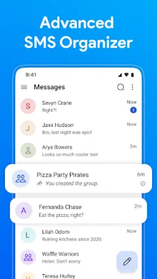 Messages is an application that helps users manage their personal and work communication in a clean and modern interface. It offers features such as inbox and archive organization, smart backup and restore, scheduled messaging, contact blocking, and support for multiple languages. The app also has a light and dark mode, a send delay option, custom swipe actions, and the ability to automatically delete old messages. It prides itself on its clean and intuitive design, speed and reliability, lack of unnecessary features, and focus on privacy. The inbox and archive feature allows users to prioritize important messages and move less important ones to the archive for a clutter-free inbox. This helps users stay organized and efficient in their communication. The smart backup and restore feature ensures that messages are secure and can easily be retrieved when switching or resetting phones. The scheduled messaging feature is perfect for setting reminders, sending birthday wishes, or following up on business matters. With the ability to block contacts, users can keep spam and unwanted texts at bay with a simple action. The app also supports multiple languages, making it more accessible and comfortable for users to use. Additionally, the light and dark mode option allows users to match the app with their phone's theme or their mood. The app also offers a send delay option, giving users a few seconds to cancel a message before it is sent. This can be helpful in avoiding sending the wrong message. Users can also customize their swipe actions, choosing to archive, delete, block, call, or mark messages as read or unread. One of the main reasons to choose Messages is its clean and intuitive design, making it easy for users to navigate and use. It is also built for speed and reliability, ensuring that messages are delivered quickly and efficiently. The app prides itself on not having unnecessary features, only including those that are essential for managing messages. It is also lightweight and privacy-focused, giving users peace of mind when using the app. In conclusion, Messages is an application that offers a range of features to help users stay organized, secure, and efficient in their communication. Its clean and intuitive design, speed and reliability, lack of unnecessary features, and focus on privacy make it a top choice for managing SMS. Download Messages today and take back control of your messages in a smarter, safer, and more organized way.
