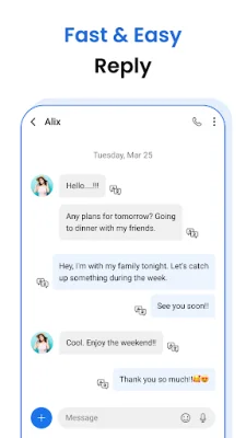 The Messages app is available in 25 languages and offers after-call features that allow for seamless communication even after a call has ended. This feature allows users to send a text message to the caller, view recent messages, or continue the conversation via SMS directly from the after-call screen. It also has HIPAA compliance, making it a secure option for messaging.