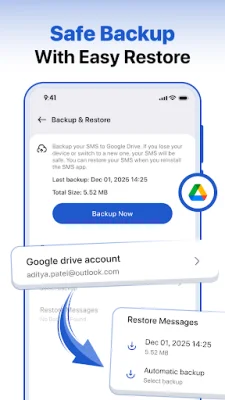 The Smart Inbox and SMS Organizer is an application that helps users keep their inbox tidy and organized. It has a built-in feature that automatically sorts messages into different categories such as Personal, Transactions, OTP, and Offers. This ensures that important messages do not get lost in the clutter of the inbox. The app also offers fast texting with full SMS and MMS support. Users can send and receive messages quickly and reliably, as well as share MMS attachments like photos and media (carrier support required). They can also create and manage group messages for friends, family, and work. To reduce unwanted messages and distractions, the app has a spam blocker and contact controls. Users can easily block unwanted messages and stay focused on real conversations. They can also schedule texts for later, making it convenient for reminders, follow-ups, birthdays, and time-sensitive updates. The app also offers backup, restore, and search features. Users can backup and restore important conversations and easily search for messages by keyword or contact. Additionally, they can customize their messaging experience with custom notifications, chat personalization, and an optional dark mode. After every phone call, the app provides an after-call summary with call duration and recent call details. Users can also set a callback reminder for that number and quickly block or mark unwanted numbers where supported. Overall, Messages: SMS Text Messenger is a modern and user-friendly app for daily conversations. Users can contact the developers at [email protected] for any queries or suggestions.
