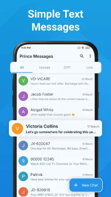 Messages is a versatile and dependable text messaging application that allows you to send messages, share media, and express yourself with emojis, stickers, and GIFs – even without an internet connection. It is the ultimate solution for organizing your conversations, whether you're sending a private message, group text, or managing multiple devices. This all-in-one messaging app is perfect for staying connected across devices, whether it's your smartphone or tablet. It offers a modern and visually appealing alternative to your default SMS app, with features such as fast texting, private chat, and real-time communication with your contacts. One of the key features of Messages is its ability to send and receive SMS messages without an internet connection. This means you can stay connected even when you don't have access to Wi-Fi or data. Additionally, all messages are sent directly through your SIM card, ensuring your data and chats remain 100% private. The app also allows you to share photos, videos, audio, and GIFs with just a tap, making it easy to express yourself and add more personality to your messages. You can also schedule messages for important occasions, block spam or unwanted numbers, and enjoy dual SIM support for compatible devices. With smart notifications and quick reply options, you can easily stay on top of your messages and respond directly from your notification bar. The app also offers a clean and organized inbox, making it easy to search for messages or archive old conversations. Plus, you can choose between a dark or light mode for a comfortable viewing experience. Messages is optimized for Android phones and tablets, making it a lightweight and fast messaging solution. It offers a rich messaging experience with support for stickers, emojis, images, videos, and more. And most importantly, it prioritizes your privacy by not storing any personal data and ensuring secure transmission of all messages through your mobile carrier. In summary, Messages is the perfect messaging app for everyday communication, personal chat, and group texting. It offers a range of features and benefits, including offline messaging, SMS and MMS support, a smart SMS organizer, and a user-friendly interface. Download Messages now and enjoy fast, secure, and smart messaging – even without an internet connection.