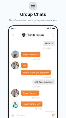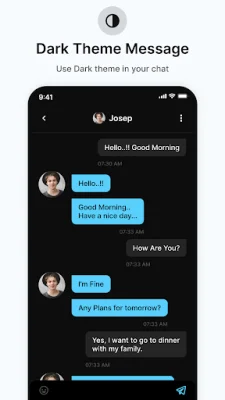 Our app also offers convenient features such as scheduling, where you can plan your messages in advance and set the date and time for sending them. You can also activate dark mode for a sleek and eye-friendly interface, engage in group chats effortlessly, and enjoy a smooth and optimized app performance. Our app is also globally compatible, ensuring seamless communication across borders.