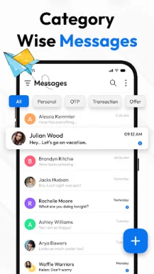 Messages Text SMS App is a messaging application that offers a variety of features to enhance your texting experience. With easy message sorting and organizing, you can keep your inbox clean and find important messages quickly. You can also schedule messages to be sent at a later time, making it perfect for reminders, greetings, and personal notes. The app also includes a spam filter to reduce clutter in your inbox and a quick OTP copy-paste feature for faster logins and transactions.