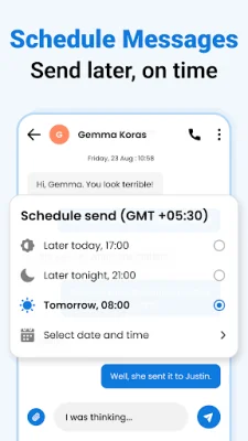 Another useful feature is the ability to schedule SMS and MMS for later. This is perfect for those who tend to forget important messages, as you can plan ahead and have them automatically delivered at the perfect time, even if you're offline.