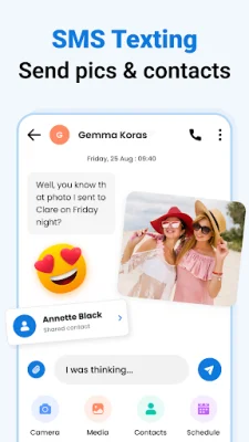 The app also makes media sharing simple, allowing you to easily send photos, videos, voice clips, and contacts directly from your chat. It supports all major file types and ensures a seamless and expressive communication experience with your contacts.