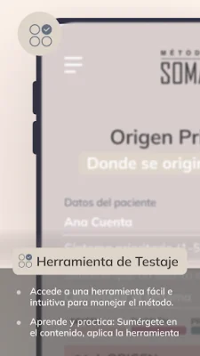 ¿Cómo funciona la app Método SOMA? Primero, debes descargarla en tu dispositivo móvil y completar tu perfil, definiendo tus objetivos. Luego, podrás explorar el contenido disponible y elegir los cursos y herramientas que más te interesen. Sumérgete en el contenido, aplica las herramientas, profundiza y comparte con otros alumnos lo aprendido en la formación del Método SOMA. Observa cómo tu vida cambia para mejor gracias a esta metodología y, si eres terapeuta SOMA, podrás utilizar la app para una mejor gestión de tus clientes.
