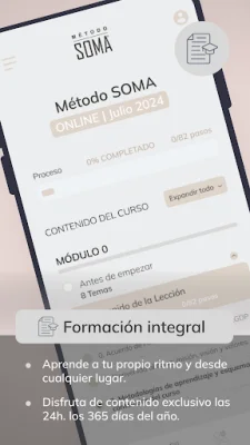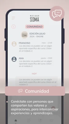 En la app Método SOMA encontrarás una formación integral, una herramienta de testaje y una comunidad de apoyo. La formación integral te permitirá aprender de manera completa y profunda, mientras que la herramienta de testaje te ayudará a evaluar tu progreso. Además, la comunidad SOMA te brindará un espacio para conectarte con personas que comparten tus valores y aspiraciones, y así intercambiar experiencias y aprendizajes.