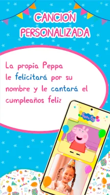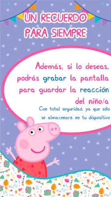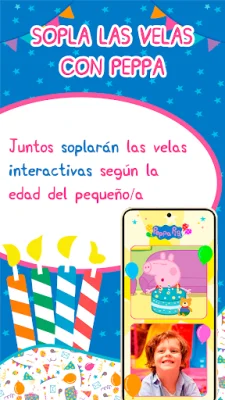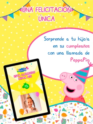 ¡Celebra el cumpleaños de tu hijo/a de una manera única y especial con la ayuda de Peppa Pig! Esta aplicación te permite programar una videollamada personalizada con Peppa, en la que ella cantará "Cumpleaños Feliz" y hablará directamente con tu hijo/a por su nombre. Además, juntos podrán decorar una tarta virtual y soplar las velas según la edad del niño/a. ¡Una experiencia interactiva y divertida para celebrar su día especial!