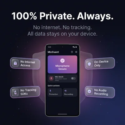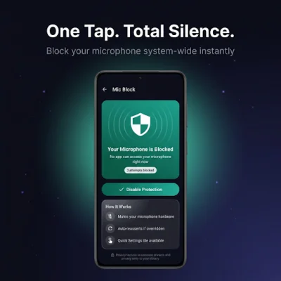 MicBlock is a mobile application that allows users to easily block their device's microphone with just one tap. This feature ensures that no app, not even those running in the background, can listen in on your conversations. You can easily turn the microphone back on whenever you're ready to use it again.