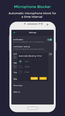 Overall, Microphone Blocker is a quick and easy-to-use solution for protecting against unauthorized microphone use. It can provide peace of mind for those concerned about their privacy and security, and it does not require any technical knowledge or root access to use.