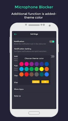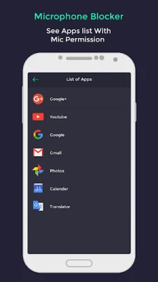 The app offers a range of features, including automatic microphone blocking at set time intervals, a notification app launcher for quick access to microphone settings, and protection against spyware, malware, and viruses. It also allows the user to see a list of apps that have permission to access the microphone and offers a simple and clear design with multiple theme options.