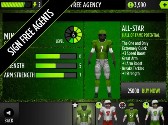 To succeed in the game, players must assemble a strong team through free agency acquisitions and train their players to maximize their on-field performance. With the ability to make electric plays, such as a QB scramble when no one is open, players can truly experience the thrill of being on the field and leading their team to victory. 4-ON-4 FOOTBALL offers a unique and exciting football experience for players of all levels.