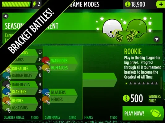 One of the most exciting features of 4-ON-4 FOOTBALL is the ability to play as the legendary Michael Vick. Players can make electric passes or use his speed and agility to extend plays with his legs. The game also offers a challenging tournament mode where players can battle their way through different brackets, starting from the Rookie tournament and aiming for the coveted Legendary status in the Hall of Fame.