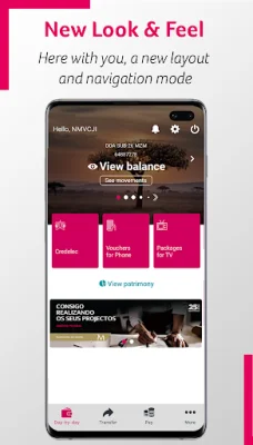 The products carousel allows for easy navigation and specific operations for each product, including checking movements, balances, and details. The transfer feature is also easily accessible in the navigation bar and offers various options such as intrabank transfers, interbank transfers, and mobile transfers.