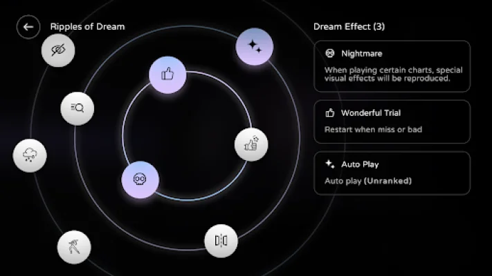 One of the unique features of this application is its dream replay mode, which adds an extra layer of challenge and enjoyment to the game. Players can choose from different options such as "Wonderful Trial" to automatically restart on a miss or bad, "Fade out" to make notes disappear when approaching, or "Downpour" to rain down a massive number of raindrop notes for a chaotic gameplay experience.