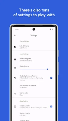 Minimal Alarm Clock is an application that follows the principles of Material design to provide a simple and elegant user interface. It aims to help users start their day on the right foot with a touch of sophistication. The app offers a range of features that go beyond just setting an alarm, making it more than just a basic alarm clock. One of the key features of Minimal Alarm Clock is its bedtime reminders. With gentle nudges, users will never miss their bedtime again, ensuring they get enough rest for the next day. The app also offers beautiful animations that greet users in the morning, adding a touch of joy to their wake-up routine. Users can choose from 12 original alarm sounds, each designed to soothe and energize them for the day ahead. To make waking up more challenging and engaging, Minimal Alarm Clock offers wakeup challenges. These challenges require users to solve different tasks to dismiss the alarm and wake up their brain. Additionally, the app has a wakeup check feature that ensures users are fully awake with a simple verification step. For those who need a quick power nap, Minimal Alarm Clock has a feature for that too. Users can set a quick powernap alarm and wake up feeling refreshed with just a tap. The app also offers an alarm pause feature for those moments when users need a little more time before starting their day. Minimal Alarm Clock also takes into consideration users' vacation time. With the vacation mode feature, users can enjoy their holidays without disrupting their alarm routine. The app also allows users to personalize their snooze time, giving them the option to sleep for a few extra minutes. In addition to its functional features, Minimal Alarm Clock also offers a sleek and modern interface designed for ease of use. Users can choose between light and dark themes, depending on their mood or time of day. With its clean and minimal design, Minimal Alarm Clock promises to make mornings delightful for its users. So, if you're ready to transform your wake-up experience, download Minimal Alarm Clock now and start your mornings on the right note. With its range of features and elegant design, this app is sure to make a positive impact on your daily routine. Don't wait any longer, give it a try and see the difference for yourself!