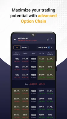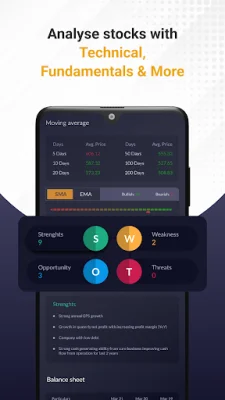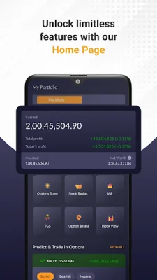 The app also offers an array of features to enhance the trading journey, such as Trading View Charts, Power Cart for placing multiple orders with a single click, and seamless searching for stocks, research ideas, and trends. Users can also manage and analyze their investments across various products like Baskets & IAP, and stay informed about upcoming events. The app provides real-time updates on profit and loss, as well as overall margin utilization, making it easy for users to track their positions at all times.