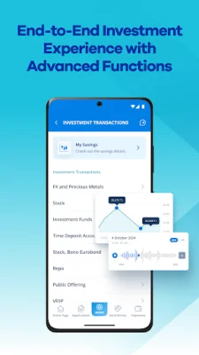 After logging in, you can quickly view your account, card, and financial summary information on the welcome page. You can also benefit from special offers and campaigns, easily access transactions with the search function, and save time with recent searches. The app also offers a wide range of investment transactions, including opening a time deposit, creating and monitoring a portfolio for stocks, foreign exchange transactions, and futures and options. You can also access free live data on the markets, participate in public offerings, and receive daily audio bulletins on stocks.