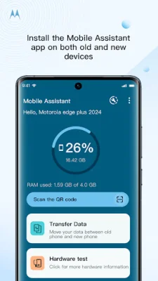 Introducing a convenient solution for transferring personal files from your old Motorola, Lenovo, or Samsung phone to your new Motorola device. With the Mobile Assistant app, you can easily connect your old and new phones over wi-fi and select the specific types of files you want to transfer, such as photos, videos, music, call logs, SMS, and contacts. This app is compatible with Motorola and Lenovo phones running Android 8 or later, as well as Samsung phones with Android 8 or later. Please note that this app only supports device-to-device transfers and does not include cloud storage for data transfer.