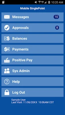 In addition to these features, Mobile SinglePoint also allows users to approve ACH batches and templates, wire transfers, and book transfers. System administrators have the ability to approve password resets and control access to the app. The services, accounts, and access entitlements of each user determine which functions are available through Mobile SinglePoint.