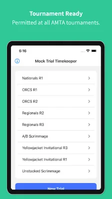 One of the most impressive features of this app is that it is allowed at all tournaments that follow the AMTA Rulebook, including Regionals, ORCS, and Nationals. This means that users can confidently use Mock Trial Timekeeper at any AMTA tournament and impress judges and opposing counsel with their impeccable timekeeping skills.