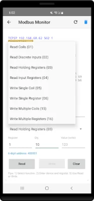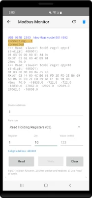Modbus Monitor Free is an application designed to help users easily connect and communicate with industrial devices using Modbus protocols. It is perfect for beginners, students, hobbyists, and field technicians who want to learn about Modbus in a simple and intuitive way. The interface of Modbus Monitor Free is beginner-friendly, with a form-based design that eliminates the need for confusing codes. Users can select the desired function from a dropdown menu, enter the device address and register number, and then tap the "Read" or "Write" button to instantly see the results in a clear text display. The process of using Modbus Monitor Free is easy and straightforward, with just three simple steps. Users can select the function, enter the necessary details, and tap the "Read" or "Write" button to get immediate results. Unlike other tools, Modbus Monitor Free does not require users to memorize complex address formats. Instead, they can simply fill in the fields for device address, register number, quantity, and function from an easy dropdown menu. Modbus Monitor Free offers multiple connection options, including Modbus TCP for WiFi or Ethernet connections, Bluetooth Classic for wireless serial connections, Bluetooth Low Energy for modern wireless devices, and USB Serial Ports for direct cable connections. This makes it a versatile and convenient tool for various devices. The application is perfect for students learning about industrial automation, hobbyists experimenting with PLCs and sensors, technicians performing quick device diagnostics, and those working on Arduino or Raspberry Pi projects with Modbus. It is also suitable for anyone who wants to test Modbus communication without coding. With Modbus Monitor Free, users can test PLC communication before programming, troubleshoot sensor connections, learn Modbus protocol hands-on, monitor temperature, pressure, and control values, experiment with industrial IoT devices, and control relays and read sensor data. The application supports a wide range of hardware, including PLCs, industrial sensors and actuators, Arduino and Raspberry Pi with Modbus capability, energy meters and inverters, HVAC control systems, and variable frequency drives. It also offers key features such as a dropdown function selector, separate fields for device, register, quantity, and value, a live 6-digit address preview, a large and readable response display, and beginner-friendly helper tips. Modbus Monitor Free is completely free with no hidden costs. Users can try it risk-free and then upgrade to Modbus Monitor Advanced for professional features like data logging, sensor server, cloud integration, and automation. The application also provides learning resources such as built-in helper tips, video tutorials, and responsive email support, as well as an active user community for additional help and support. In case of any questions or issues, users can contact the Modbus Monitor team via email or visit their website for more information and video tutorials. Start your Modbus journey today with the easiest and most user-friendly Modbus app available!