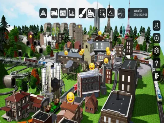 Once the track is built, players can place engines and wagons on it and watch them move along the track. The trains will automatically stop at industrial buildings and stations, delivering food, steel, and oil. If the cities on the layout are large enough, players can also transport passengers between them. The ultimate goal is to build thriving cities, provide enough resources and transportation, and increase game money within the limits of the free version.