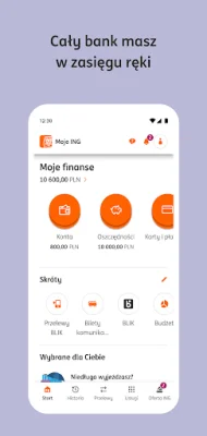 W aplikacji Moje ING mobile znajdziesz wszystkie usługi, które oferuje tradycyjny bank. Masz dostęp do swoich kont, płatności, inwestycji, kredytów, pożyczek oraz oszczędności. Możesz wykonywać przelewy BLIK, załatwiać sprawy urzędowe z profilem zaufanym oraz korzystać z wielu innych funkcji, takich jak ustawianie stałych zleceń czy wyznaczanie celów oszczędnościowych.