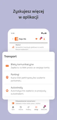 Aplikacja Moje ING mobile oferuje również wiele dodatkowych usług i funkcji, które są dostępne tylko w tej aplikacji. Możesz logować się bezpiecznie za pomocą odcisku palca, rozpoznawania twarzy lub PIN-u. Możesz również dokonywać płatności za zakupy kartą w telefonie oraz korzystać z różnych usług, takich jak bilety komunikacyjne czy płatności za parkingi.