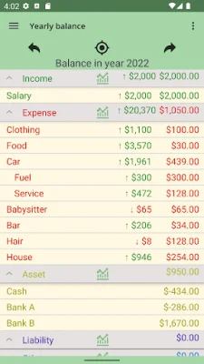 The app also offers a variety of reports, including monthly, annual, and cumulative reports. These reports can be viewed in the form of pie charts and balance sheet histograms, providing a visual representation of the user's financial data. Additionally, there is a balance sheet feature that allows users to see an overview of their overall financial status.